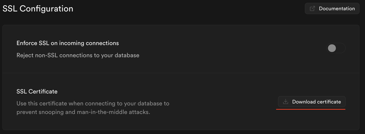 You will also need your database's password. If you forgot it, you can generate a new one in the settings.